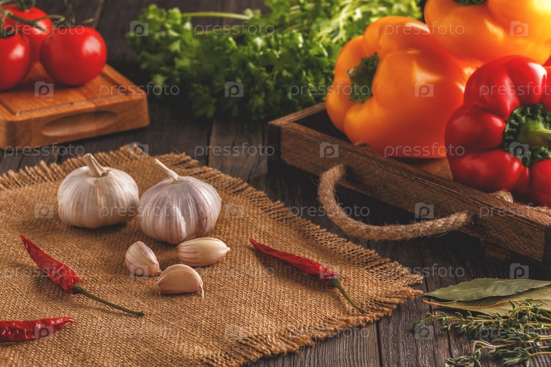Овощи, травы, специи фон. Выборочный фокус