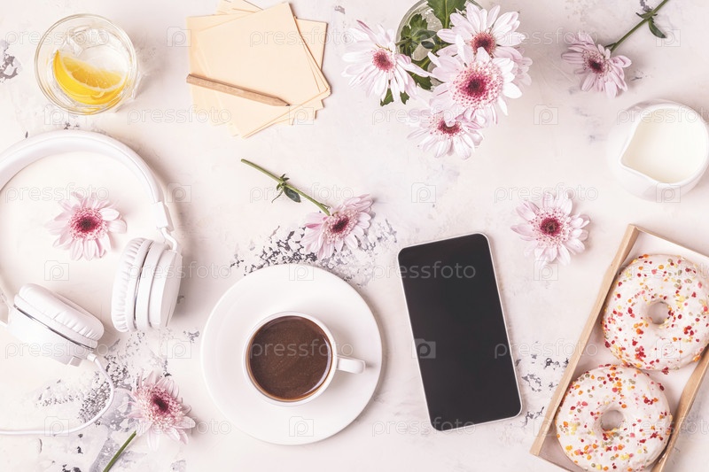 Завтрак - кофе, тефон, наушники