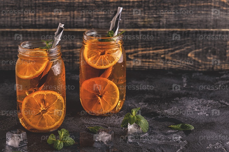 Холодный чай с дольками лимона и мятой