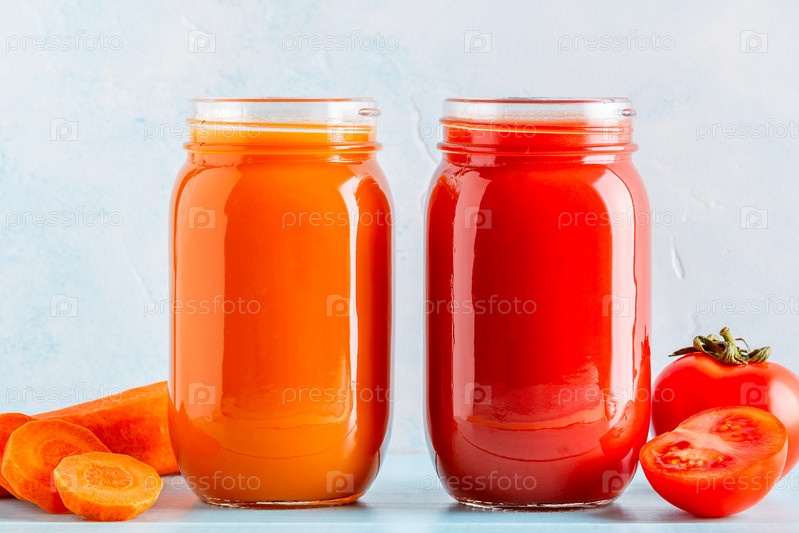 Смузи/сок оранжевого/красного цвета в банке