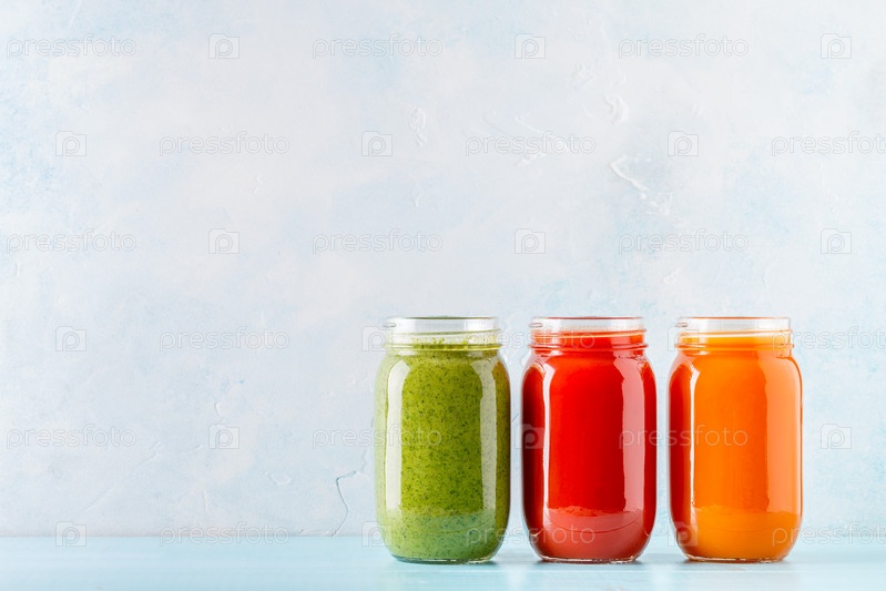 Оранжевый/зеленый/красный смузи/сок в банке