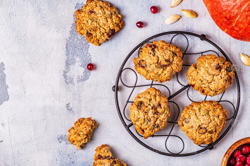 Домашнее овсяное печенье с клюквой и тыквенными семечками