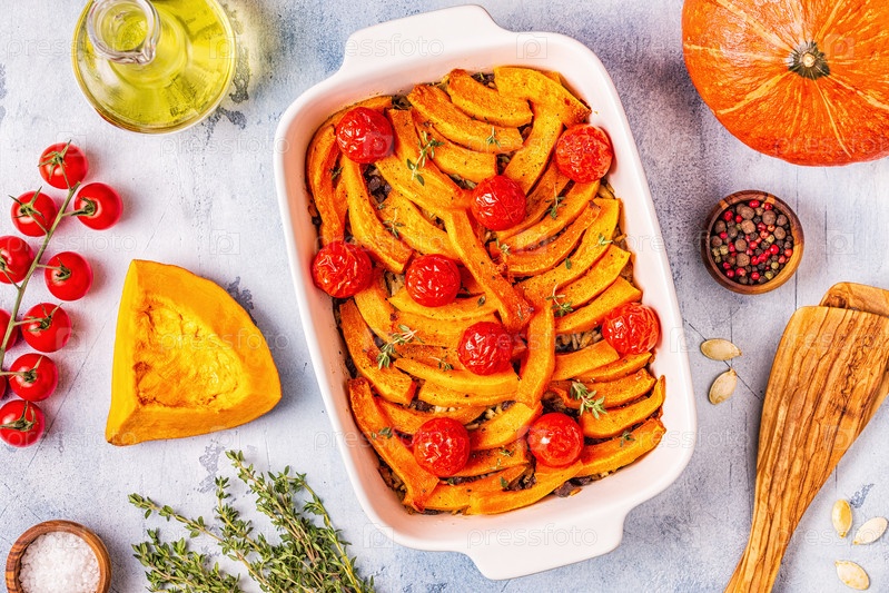 Запеканка из тыквы с мясом, рисом, помидорами