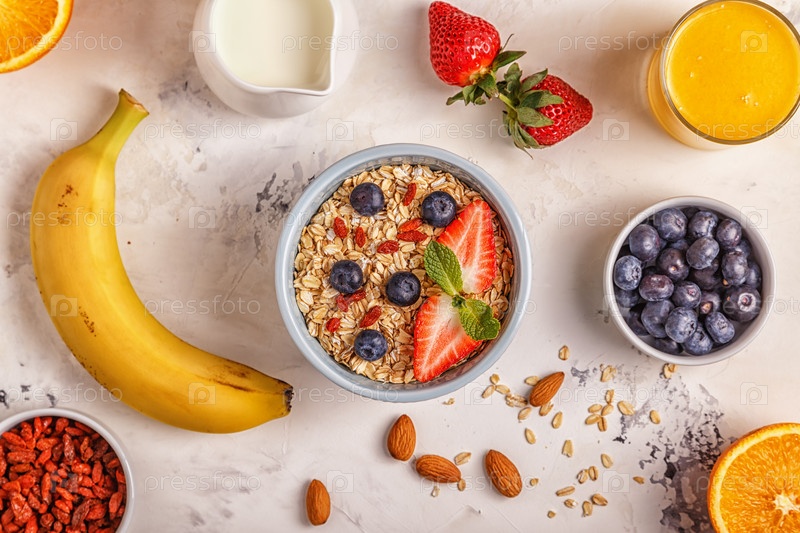 Здоровый завтрак - чаша овсянки, ягод и фруктов