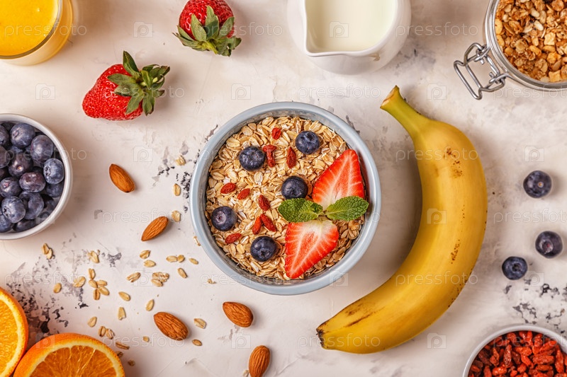 Здоровый завтрак - чаша овсянки, ягод и фруктов