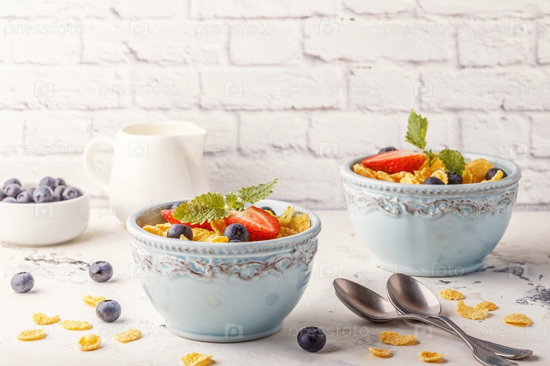 Здоровый завтрак - кукурузные хлопья с фруктами и ягодами