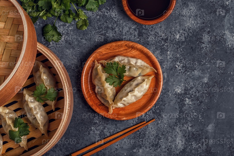 Свежие пельмени на фоне темного камня
