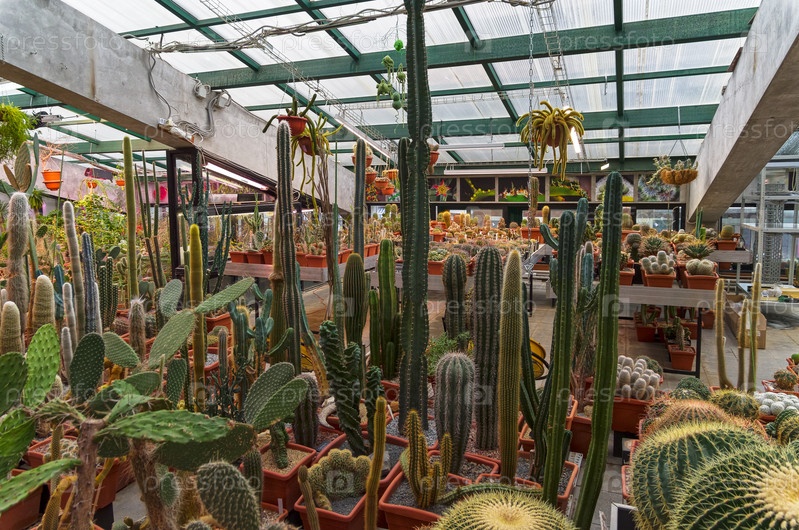 Разнообразные кактусы и суккуленты в оранжерее Аптекарского Огорода (филиал ботанического сада МГУ). Москва