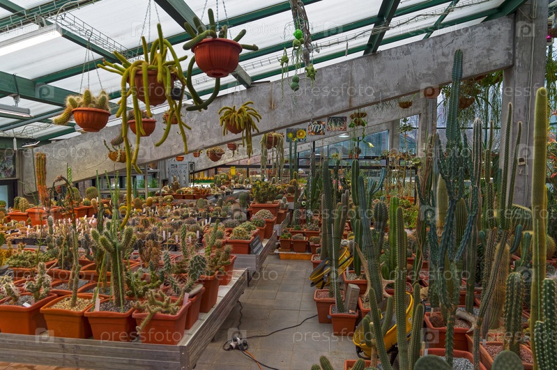 Разнообразные кактусы и суккуленты в оранжерее Аптекарского Огорода (филиал ботанического сада МГУ). Москва
