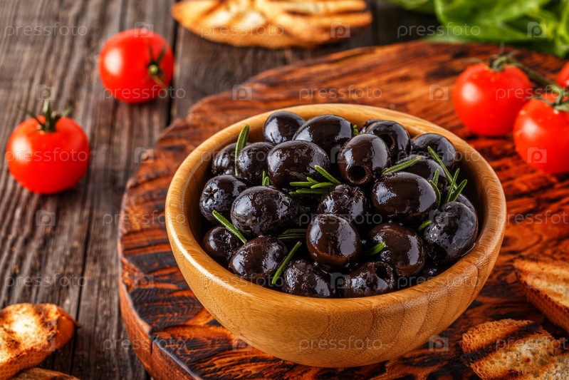 Свежие оливки с поджаренным багетом