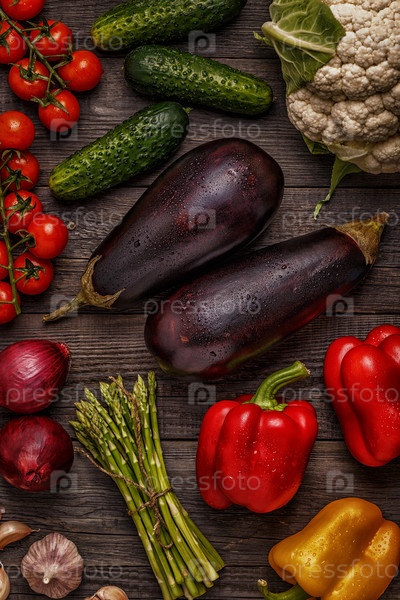 Свежие овощи для приготовления пищи на темном деревянном фоне