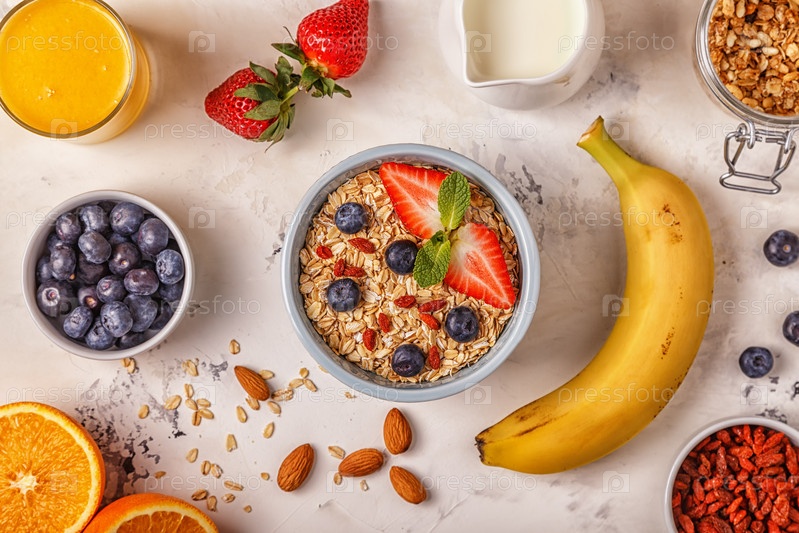 Здоровый завтрак - чаша овсянки, ягод и фруктов