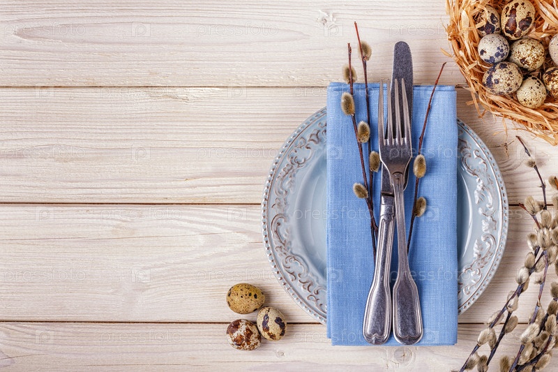 Пасхальный фон, подающий завтрак на деревянном столе, перепелиное яйцо