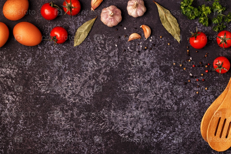 Ингредиенты для приготовления пищи на темном бетонном фоне