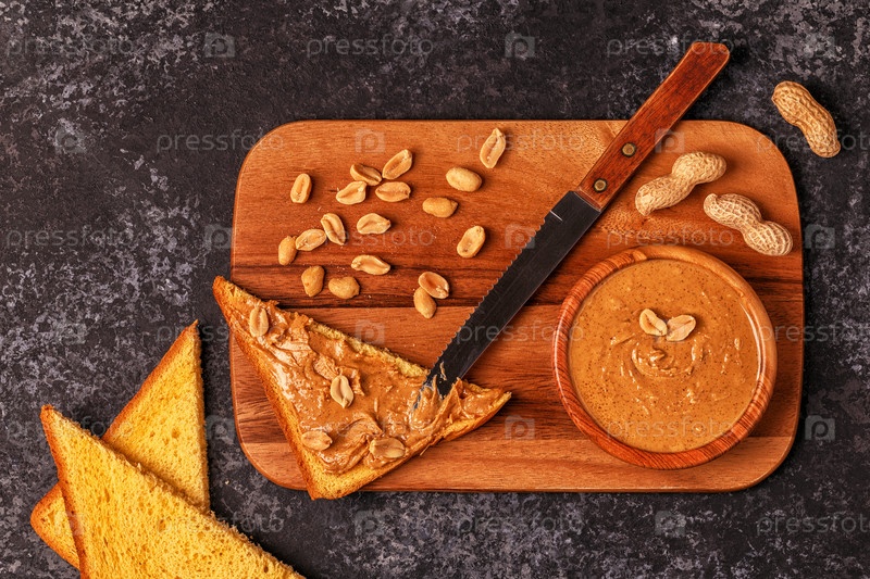 Чаша арахисового масла на деревянной доске
