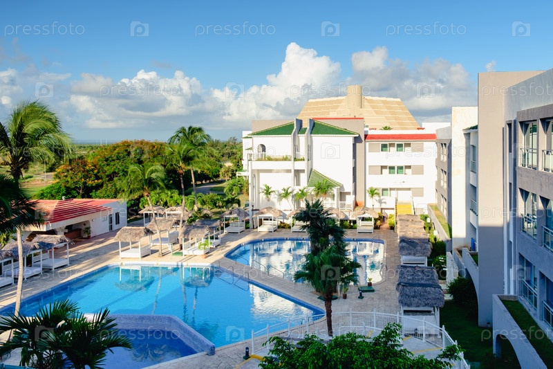 Вид сверху на бассейн отеля