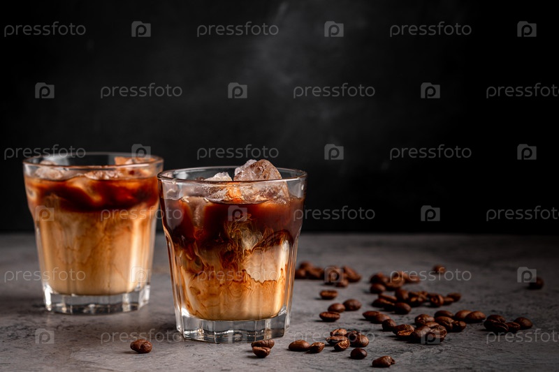 Кофе со льдом в стакане со сливками