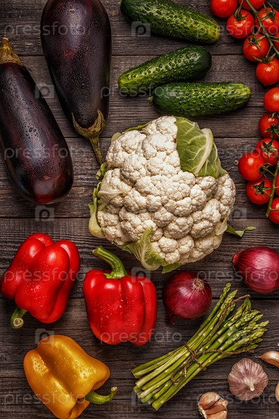 Свежие овощи для приготовления пищи на темном деревянном фоне
