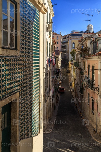 Узкая улица Лиссабона, район Байрру-Алту