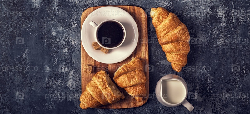 Круассаны и кофе на темном фоне