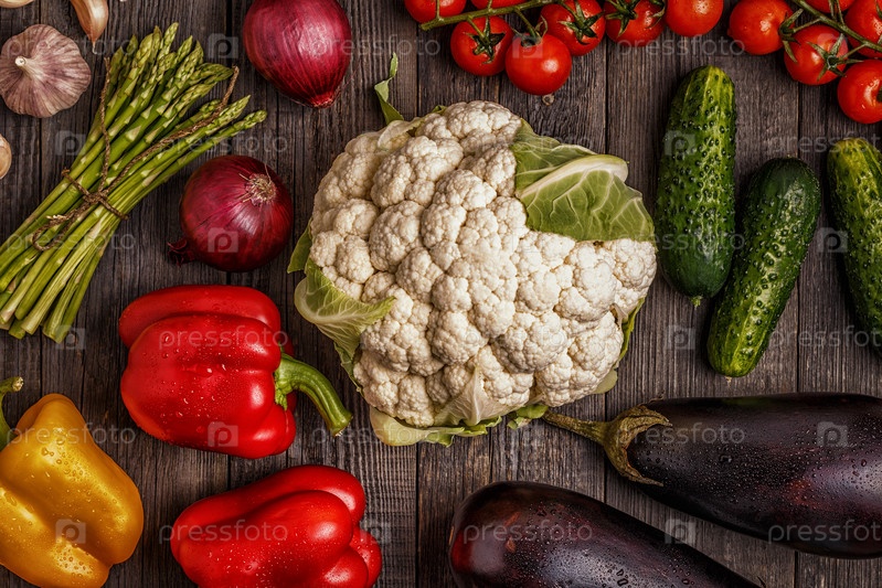Свежие овощи для приготовления пищи на темном деревянном фоне
