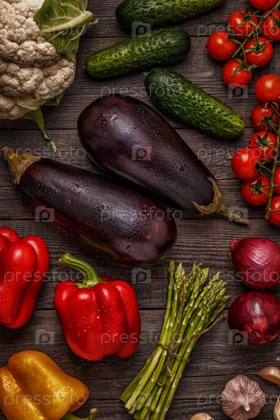 Свежие овощи для приготовления пищи на темном деревянном фоне