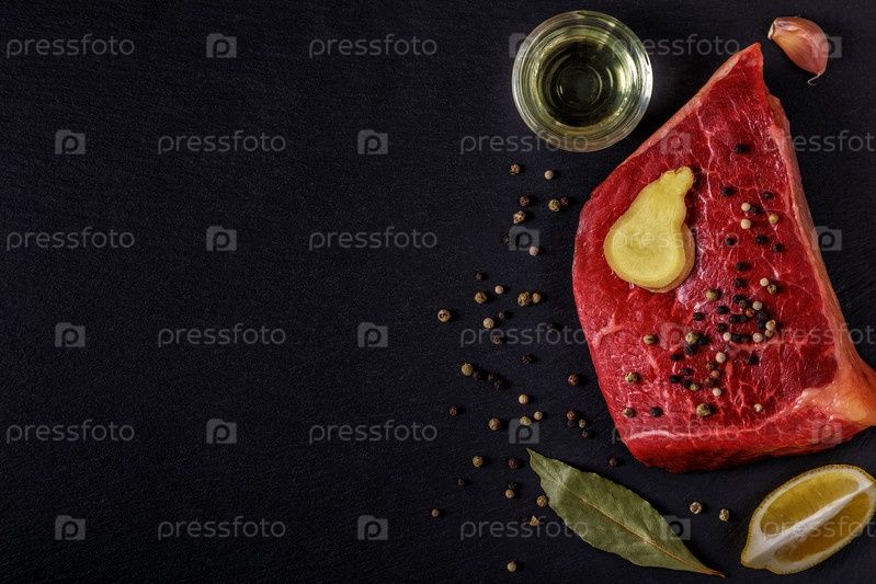 Сырой стейк со специями и ингредиентами для приготовления пищи