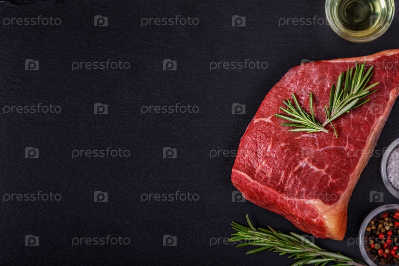 Сырой стейк со специями и ингредиентами для приготовления пищи