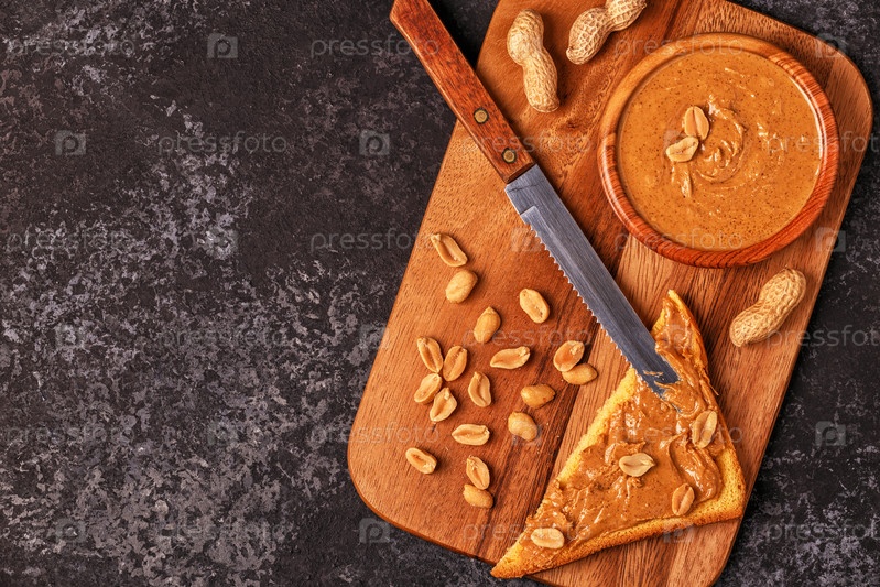 Чаша арахисового масла на деревянной доске
