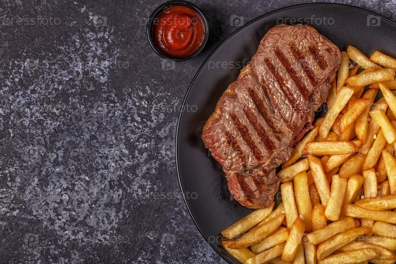 Стейк барбекю из говядины с картофелем фри