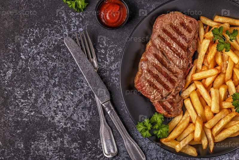 Стейк барбекю из говядины с картофелем фри