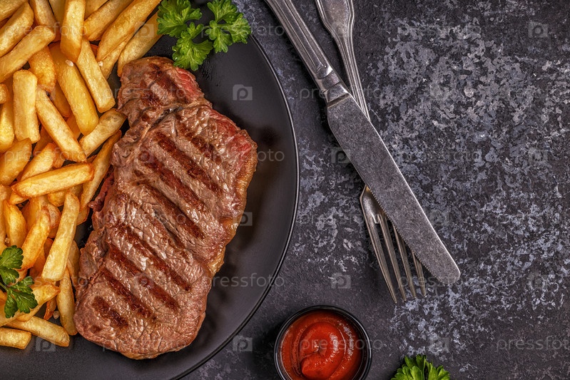 Стейк барбекю из говядины с картофелем фри