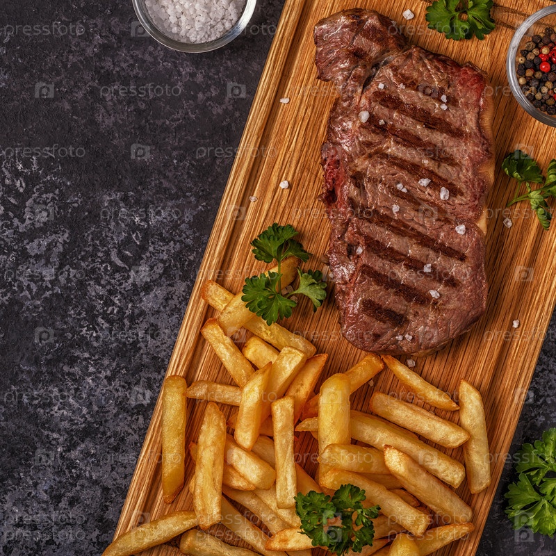 Стейк барбекю из говядины с картофелем фри