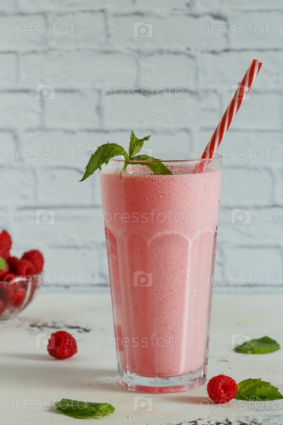 Малиновый молочный коктейль с мятой и соломкой