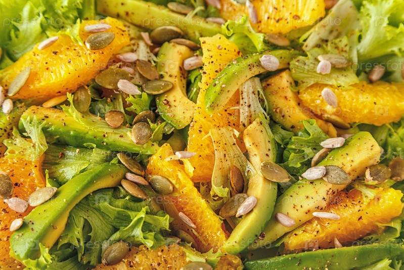 Апельсиновый салат из авокадо с тыквой и семечками