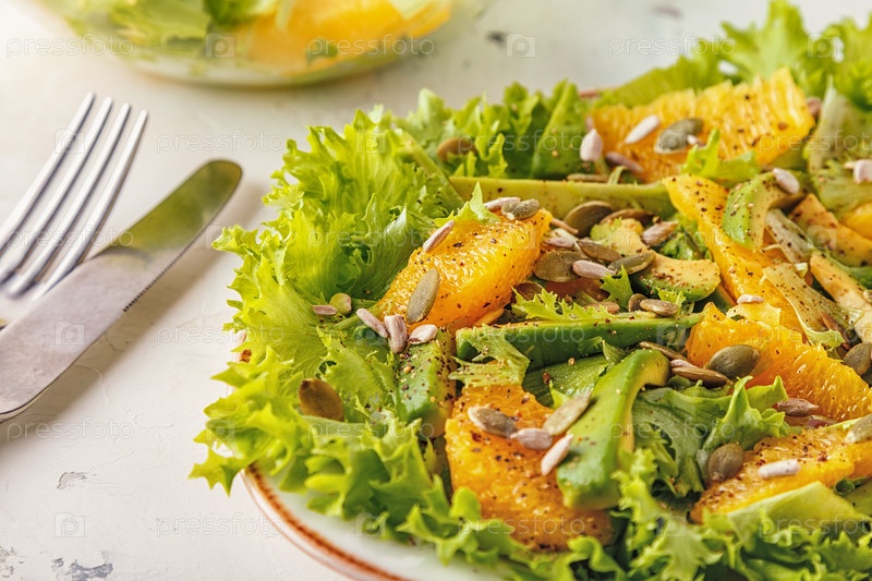 Апельсиновый салат из авокадо с тыквой и семечками