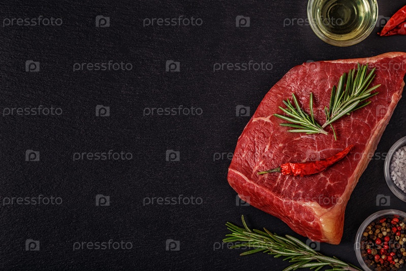 Сырой стейк со специями и ингредиентами для приготовления пищи