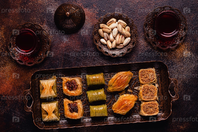 Традиционный турецкий, арабский ассортимент пахлавы сладостей