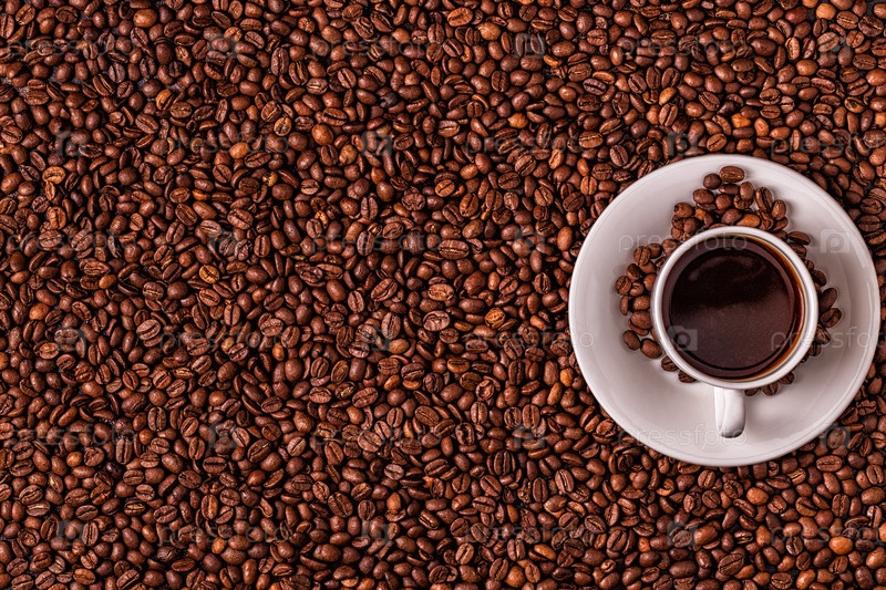 Чашка кофе на фоне кофейных зерен