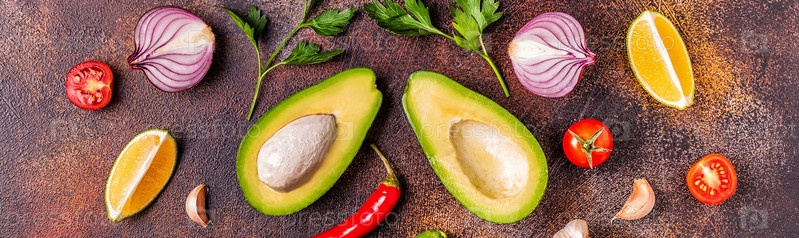 Ингредиенты для гуакамоле: авокадо, лайм, помидор, лук и специи