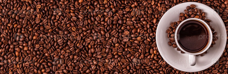 Чашка кофе на фоне кофейных зерен