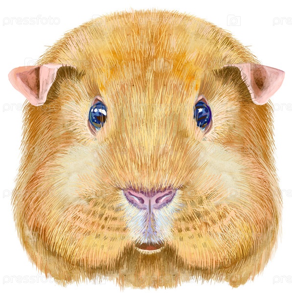 Акварельный портрет морской свинки на белом фоне