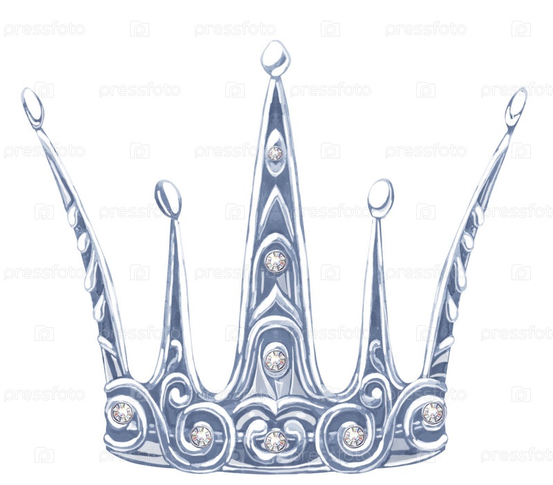 Акварель серебряная корона принцессы с фианитом из драгоценных камней