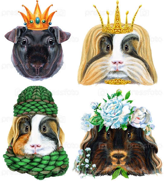 Морские свинки для графики на футболках. Акварельная иллюстрация тощей морской свинки