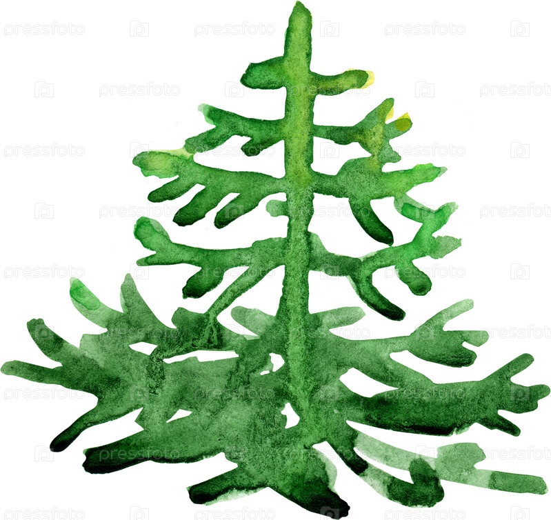 Акварельная новогодняя елка на белом фоне