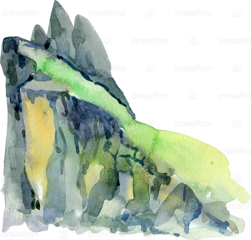 Красивая ручная рисованная красочная гора на белом фоне. Природный пейзаж. Акварельная живопись