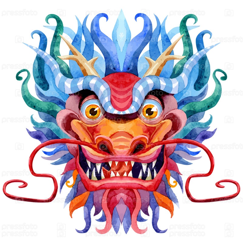Дракон китайский гороскоп характер акварельные иллюстрации, изолированные на белом фоне