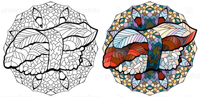 Нарисованный вручную зентангл нигири с угрем для футболки и другие украшения с мандалой для раскрашивания