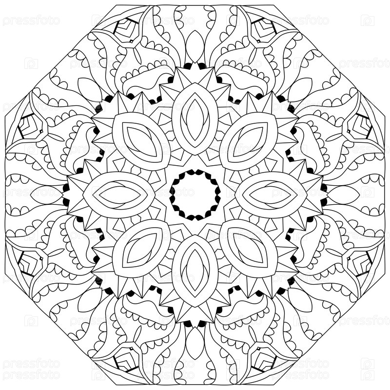 Круговой орнамент ручной работы для раскраски страницы
