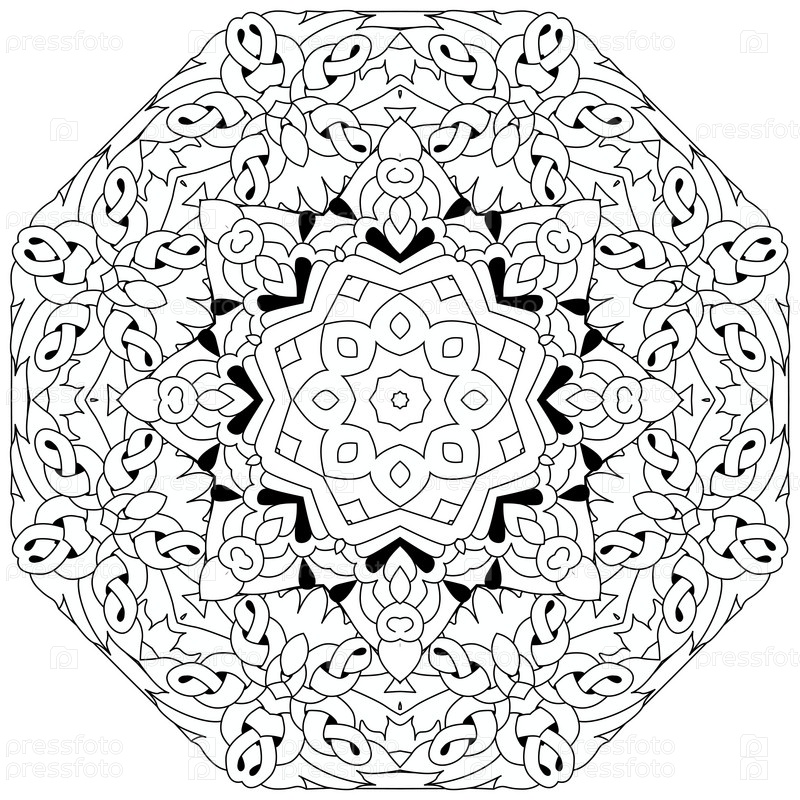 Круговой орнамент ручной работы для раскраски страницы